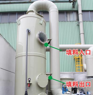 噴淋塔內(nèi)的填料多久更換另外一個因素是藥劑,噴淋塔在工作用,可能前端產(chǎn)生的廢氣種類較多,特別是酸霧處理中,部分客戶的工藝中有鹽酸、濃硫酸、硝酸、氫氟酸、鉻酸等,成份比較雜,濃硫酸具有強的氧化性、鉻酸會破壞填料的分子結(jié)構(gòu),導(dǎo)致填料軟化變形。通過觀察填料的狀態(tài),決定是否需要更換填料。